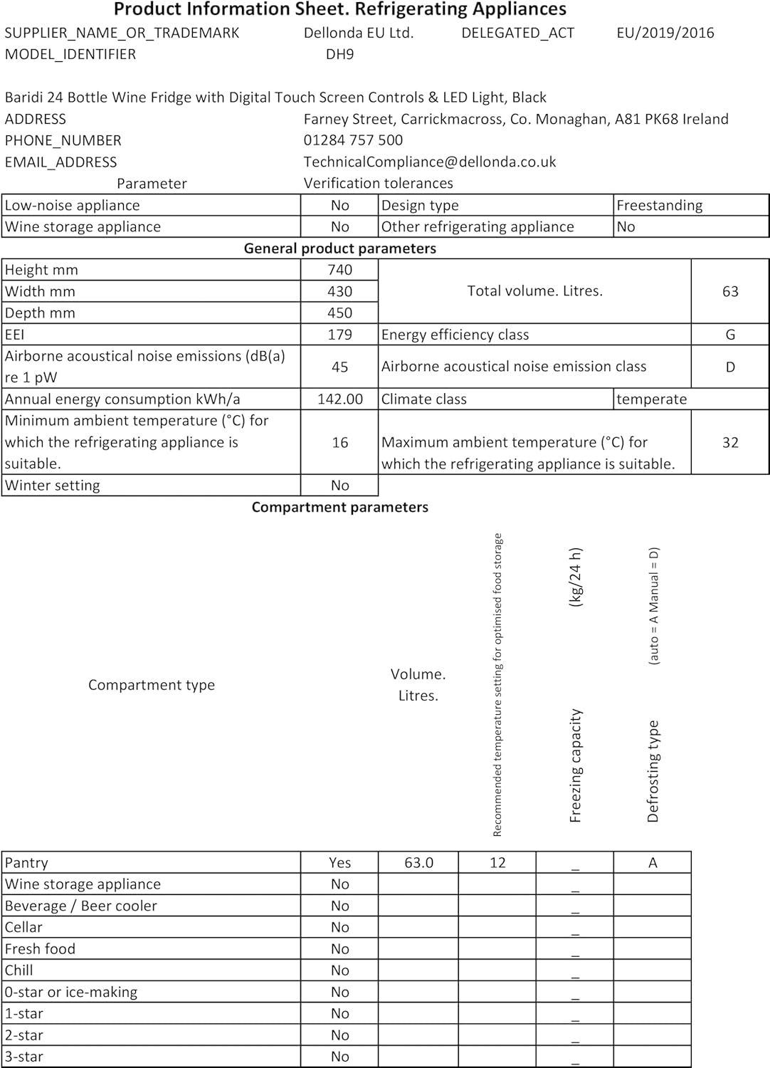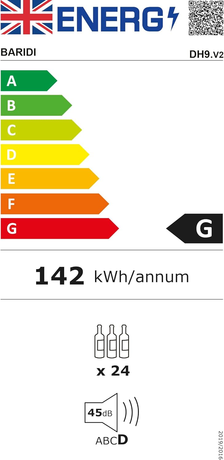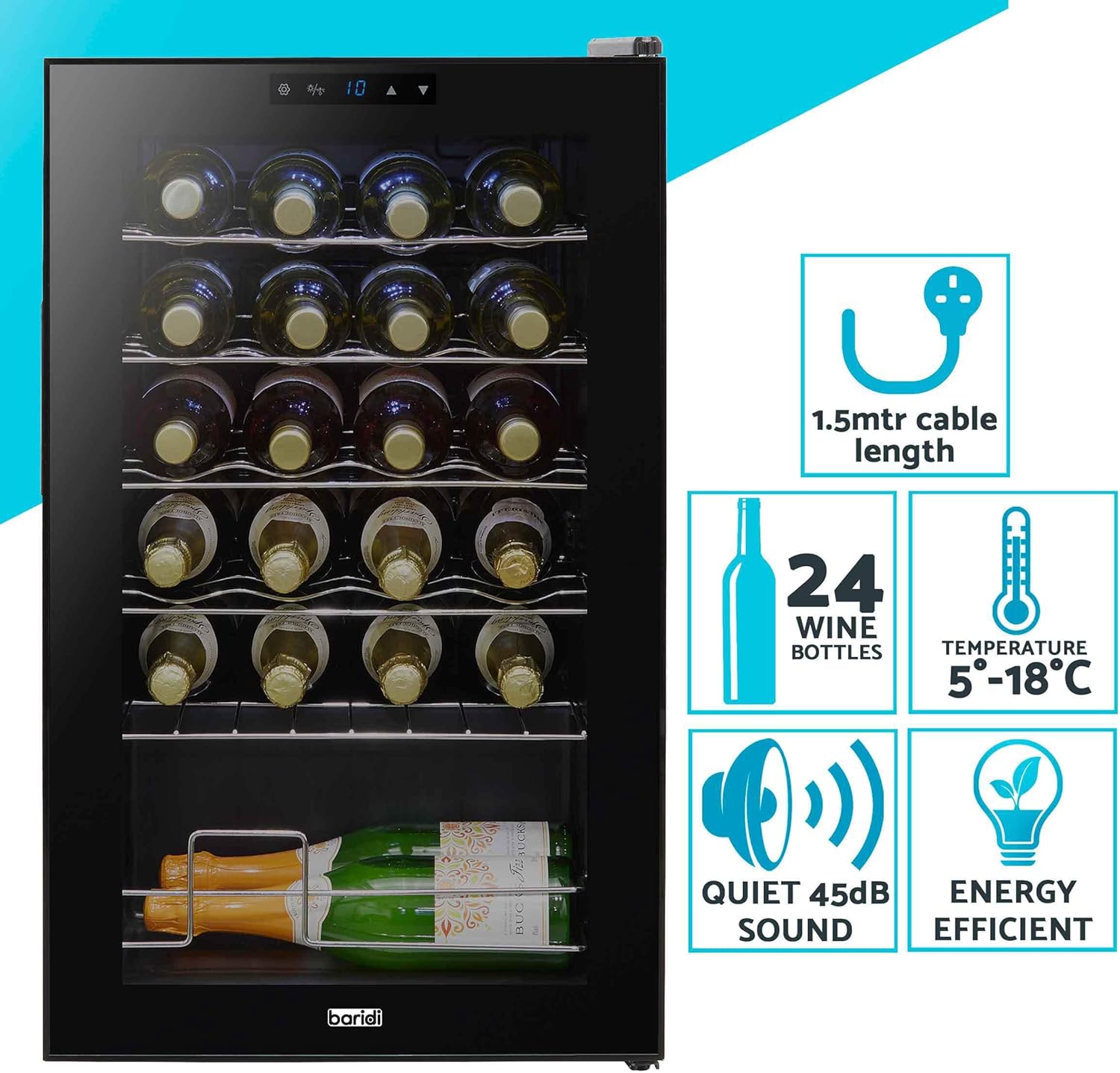 24 Bottle Wine Cooler Fridge with Digital Touch Screen Controls & LED Light, Black - DH9