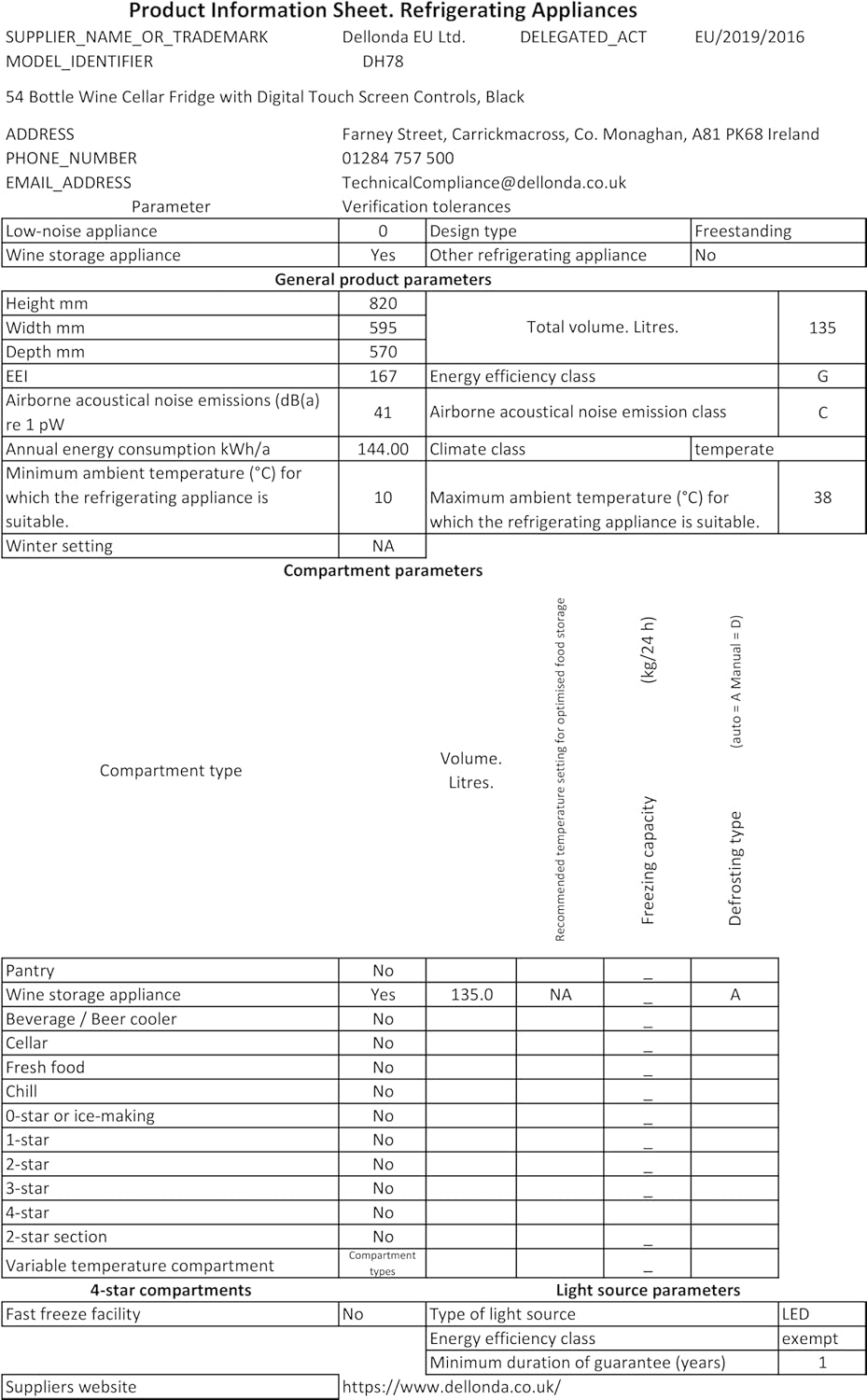 54 Bottle Wine Cellar Fridge with Digital Touch Screen Controls, 135L Capacity Cooler Cabinet, Black - DH78